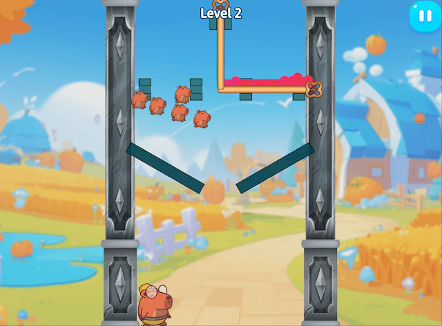 Tap the pins to pull them. Tap the Capybara to move him. Acids damage capybara and pins, except small capybaras. Enter the portal to teleport to another location. The timed pin will break when it expires. The Hazmat suit offers acid protection.